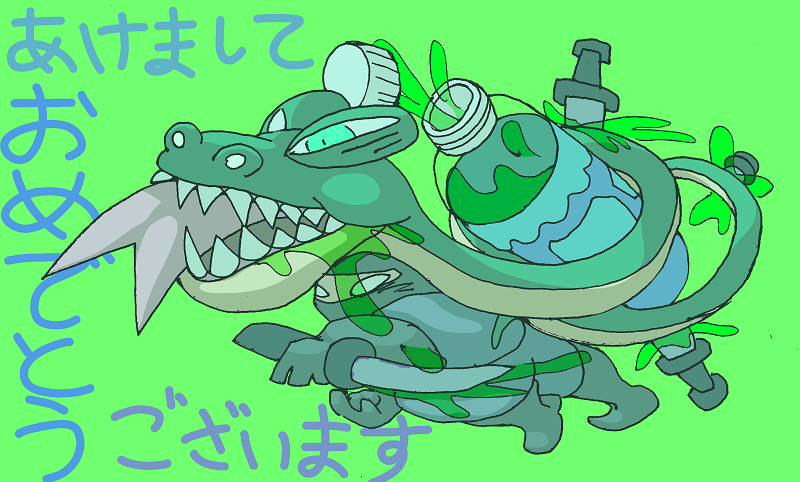 年賀状に使った絵その2 蛇 VS 忍者